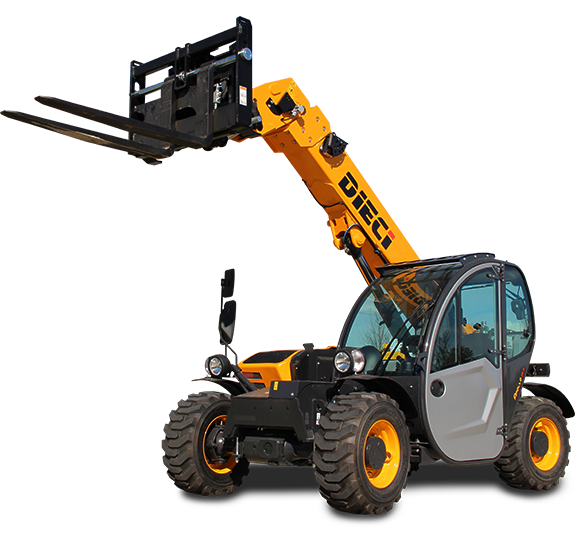 Telehandlers are fitted with rubber wheels that are fit for all types of terrain, both inside and outside. Unlike excavators which may need rubber track covers to operate on finished ground, telehandlers can easily transition from a finishing tool to a ground-breaking tool. Attachments like sweeper actually make them a great machine for cleaning up a project site and adding those finishing touches near the end of a project.